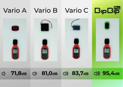 BipBip Pro har en ny inbyggd summer och skräddarsydd förstärkare, speciellt utformat för att producera ett högt och tydligt ljud. Det finns ett brett spektrum av ljudvolymer tillgängliga. hela 95dB vid full volym.