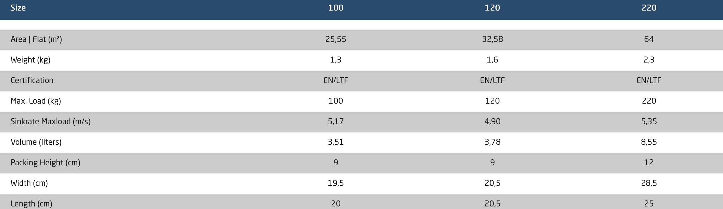 | Storlek | 100, 120, 220 |