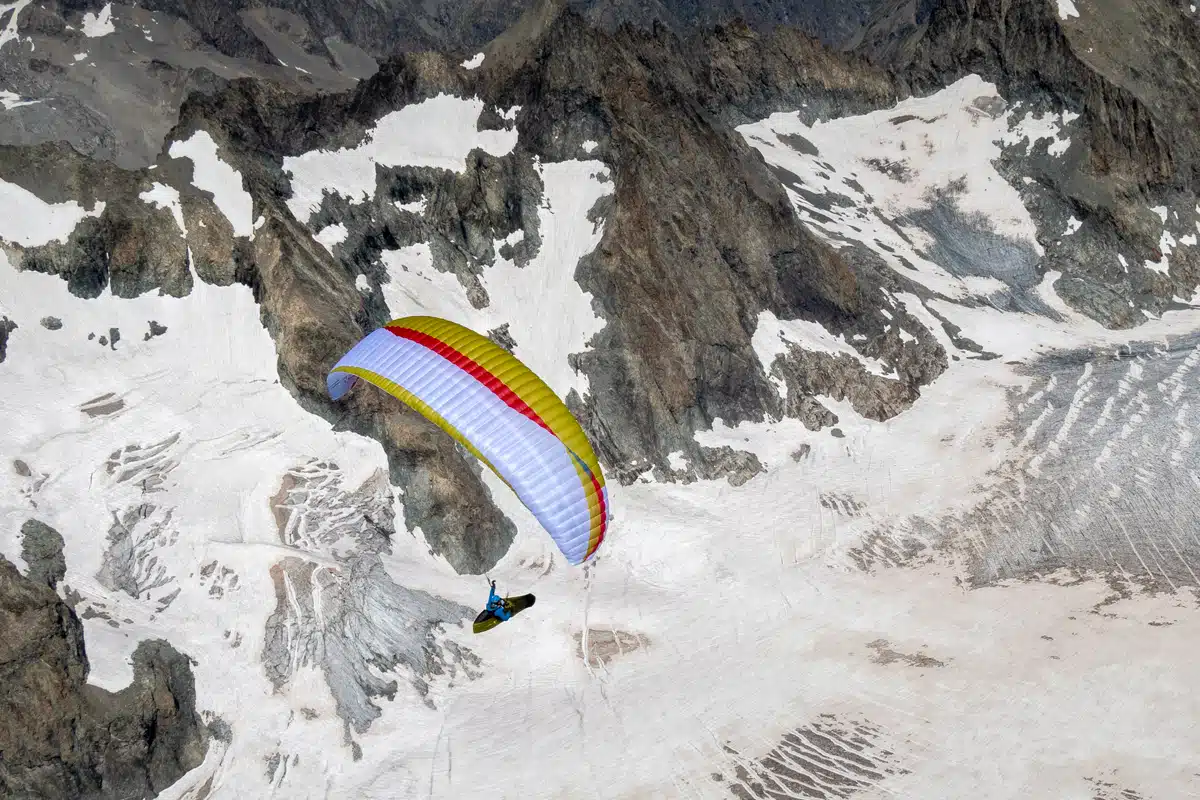 …i en bild? En pilot som står händerna på höfterna och tittar på dalen som en superhjälte som vakar över sin stad, efter att ha nått en start som bara är tillgänglig till fots.