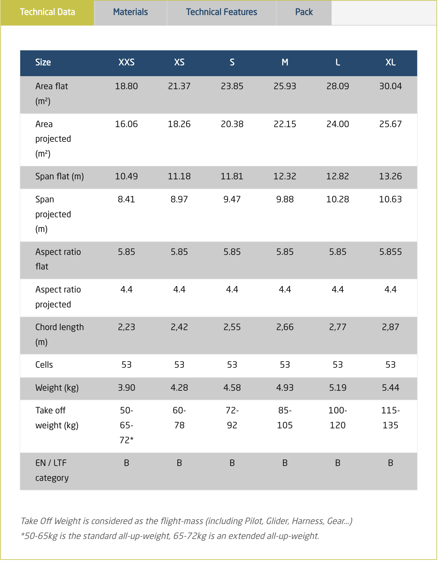 EN-B certifiering + 2,5 liner konstruktion + 2 (par winglets)