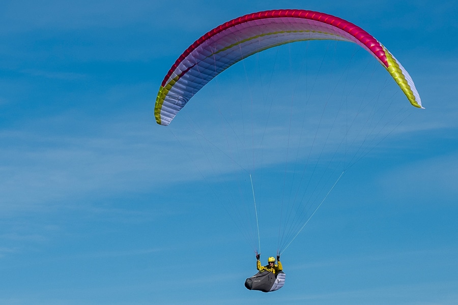 Volt 5? En äkta EN-C 2-liner för kilometerjägare, hike-and-fly-atleter och varje pilot som letar efter en högpresterande men lättillgänglig 2-liners samtidigt som de har ett lätt kit. För ”ingen gillar att gå med en tung ryggsäck”. Just go for it!