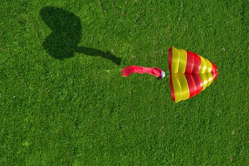 Händer det om skärmflygaren trasslar ihop sig med nödskärmen?