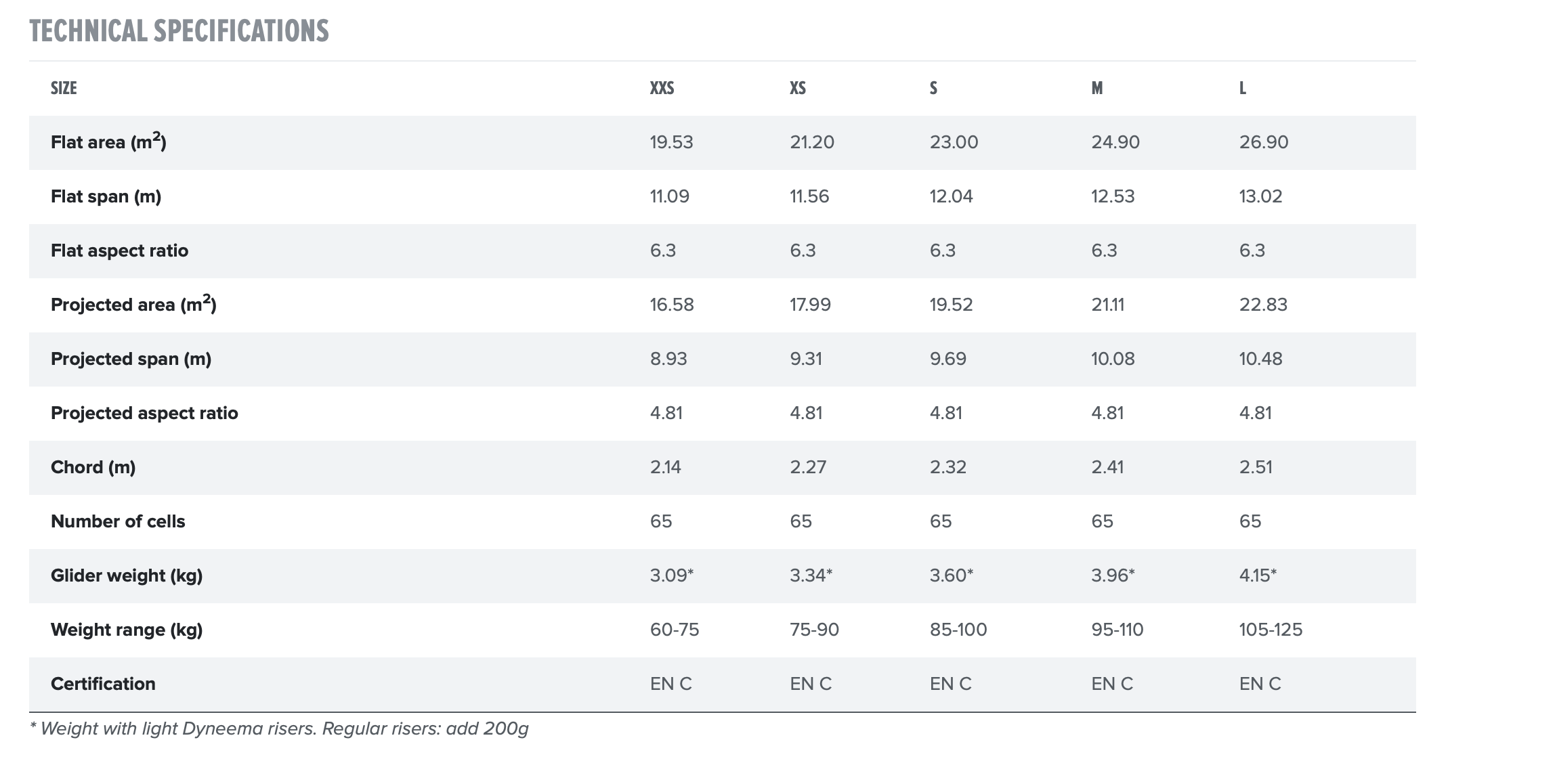 Nitinolstavar med liten diameter bibehåller profilformen i luften och i kombination med lättviktsmaterial och konstruktion möjliggör en mycket kompakt vikning och packning. Camino 2 kan packas med vår kompressbag och Genie x-lite kokongsele i vår 80L x-lite-ryggsäck, vilket ger en total förpackningsvikt på cirka 10 kg.