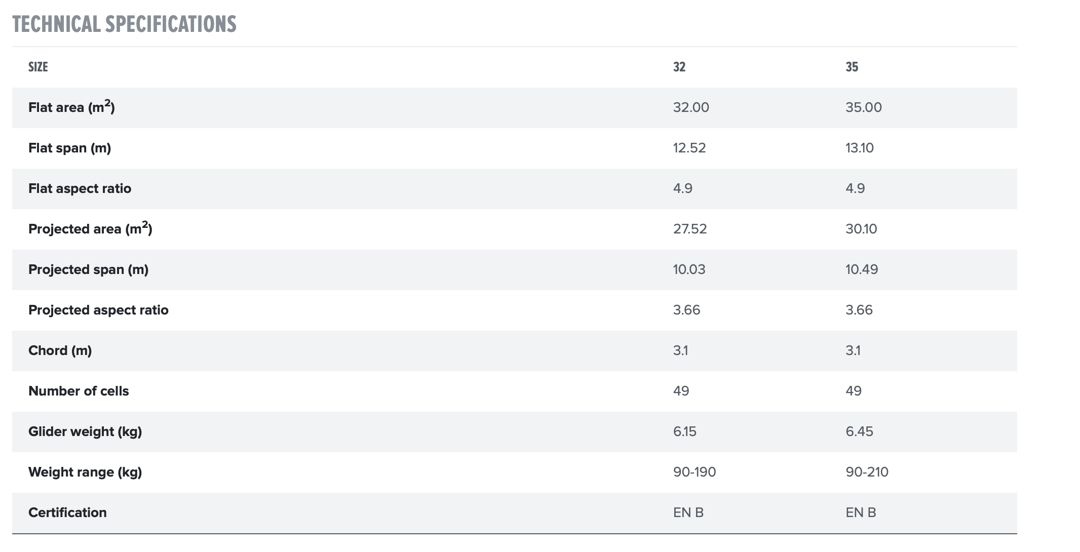 Fuse mini kommer i två storlekar, vilket gör det möjligt för piloter att välja storlek inte bara efter deras vikt, utan också efter förhållandena.