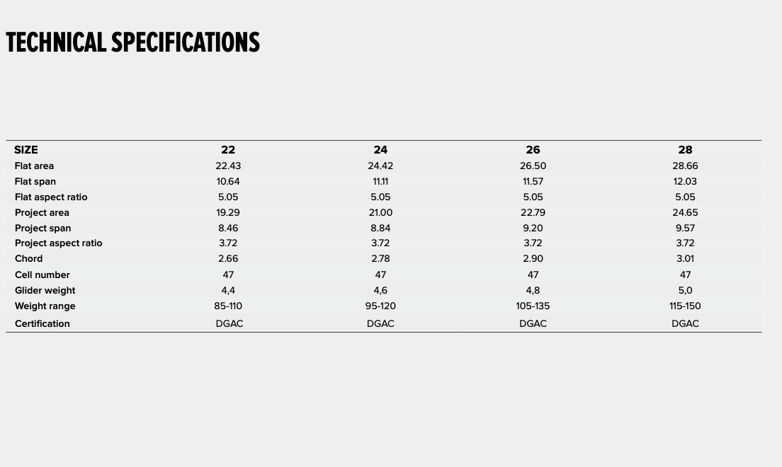 På grund av den otroligt rena framkanten uppnås med den nya Rigifoil, är start beteende förstklassig. Vingen kommer upp lätt under alla förhållanden och utan att skjuta över piloten. Korta starter och knepiga vindförhållanden är inga bekymmer.