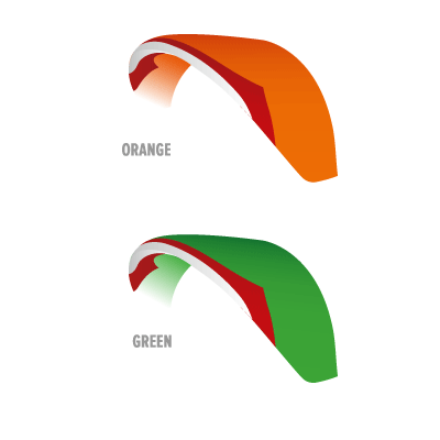 Vantage 3 uppnår både lätthet och hållbarhet genom den intelligenta blandningen av tyg på olika platser på ovansidan Samma slitstarka tyg som normala paramotorskärmar används på slitkänsliga platser på ovansidan, och lättare men ändå hållbart tyg används i mindre kritiska områden som undersidan.