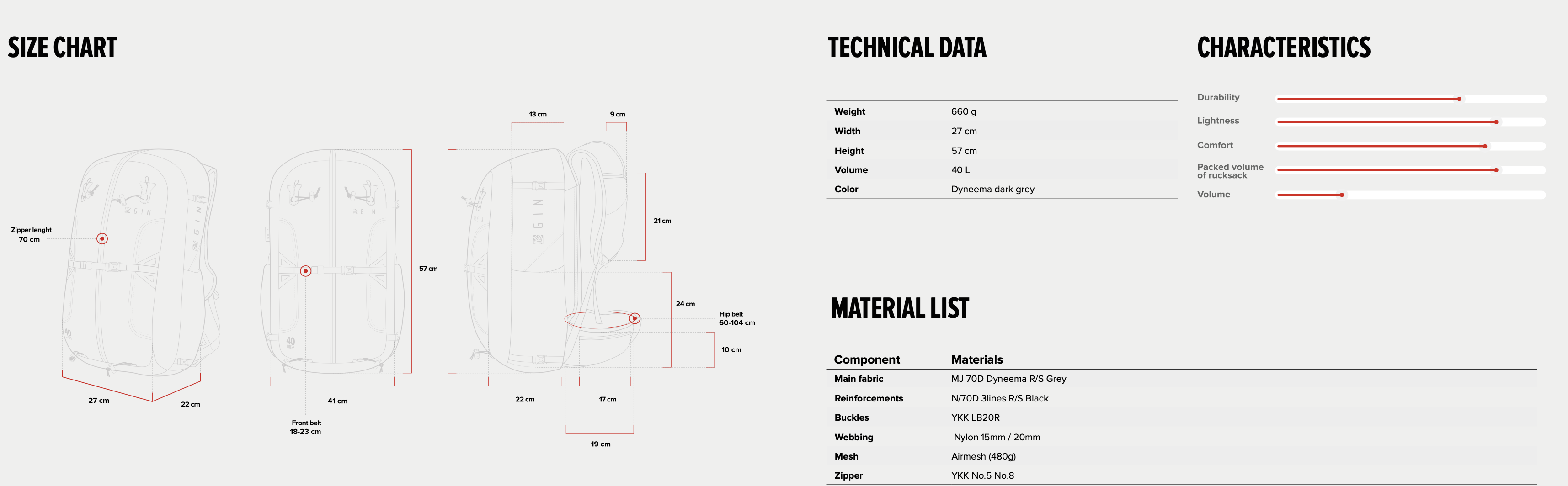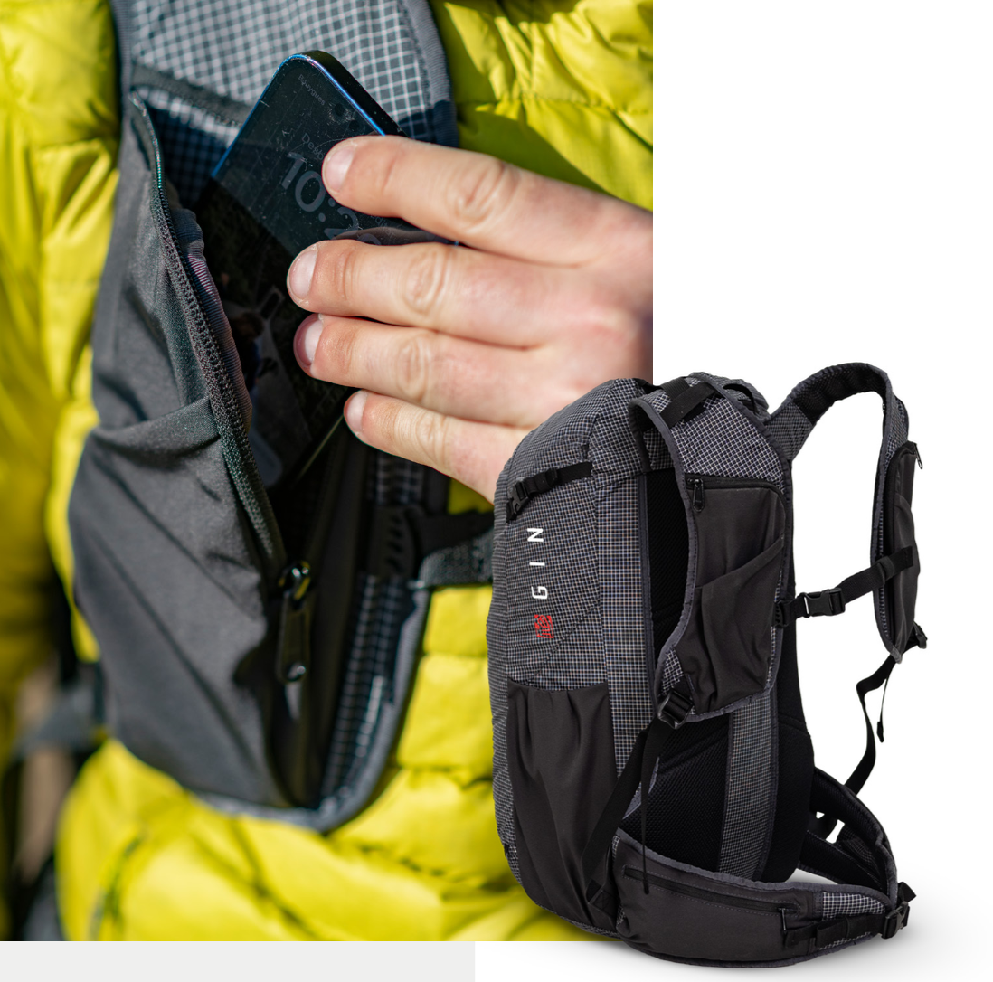 Huvuddelen av ryggsäcken är gjord av 60D dyneema-tyg – ett lätt, slitstarkt nylon/dyneema-tyg som till och med behåller sin kosmetiska dragningskraft när det är dammigt eller repat. Tack vare lättare men mer hållbara material och en effektivare konstruktion har vi uppnått en låg vikt samtidigt som vi har bibehållit en utmärkt hållbarhetsnivå.