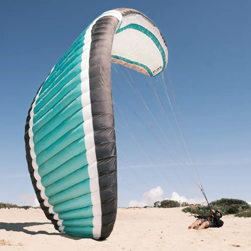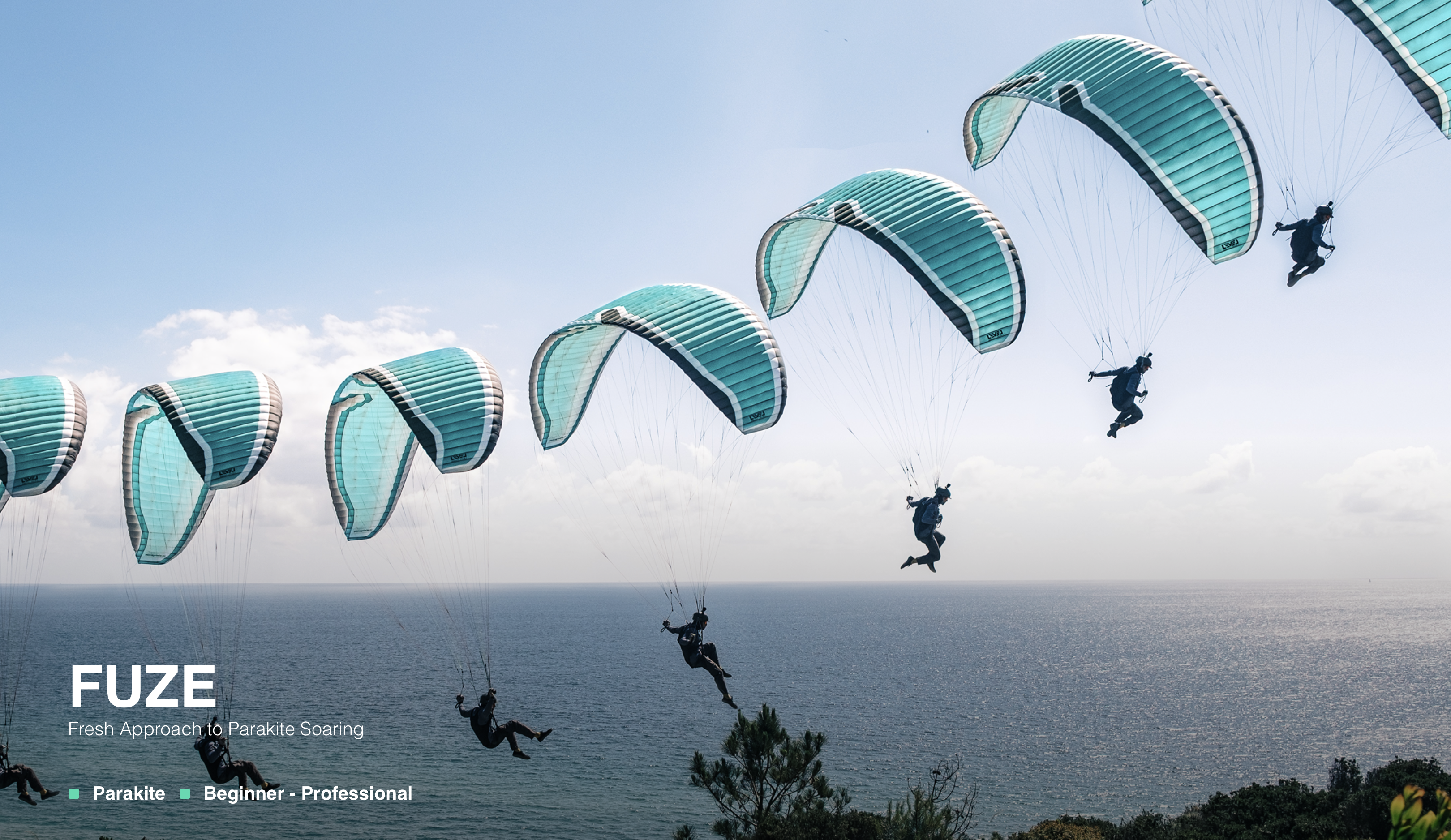 #LevelUp och njut av ett nytt tillvägagångssätt för parakiting med FUZE. En noggrant utforskad och utvecklade vinge erbjuder en solid design med progressiv säkerhet och spännande flygning, med en märkbart brantare och snabbare profil än befintliga parakiters.
