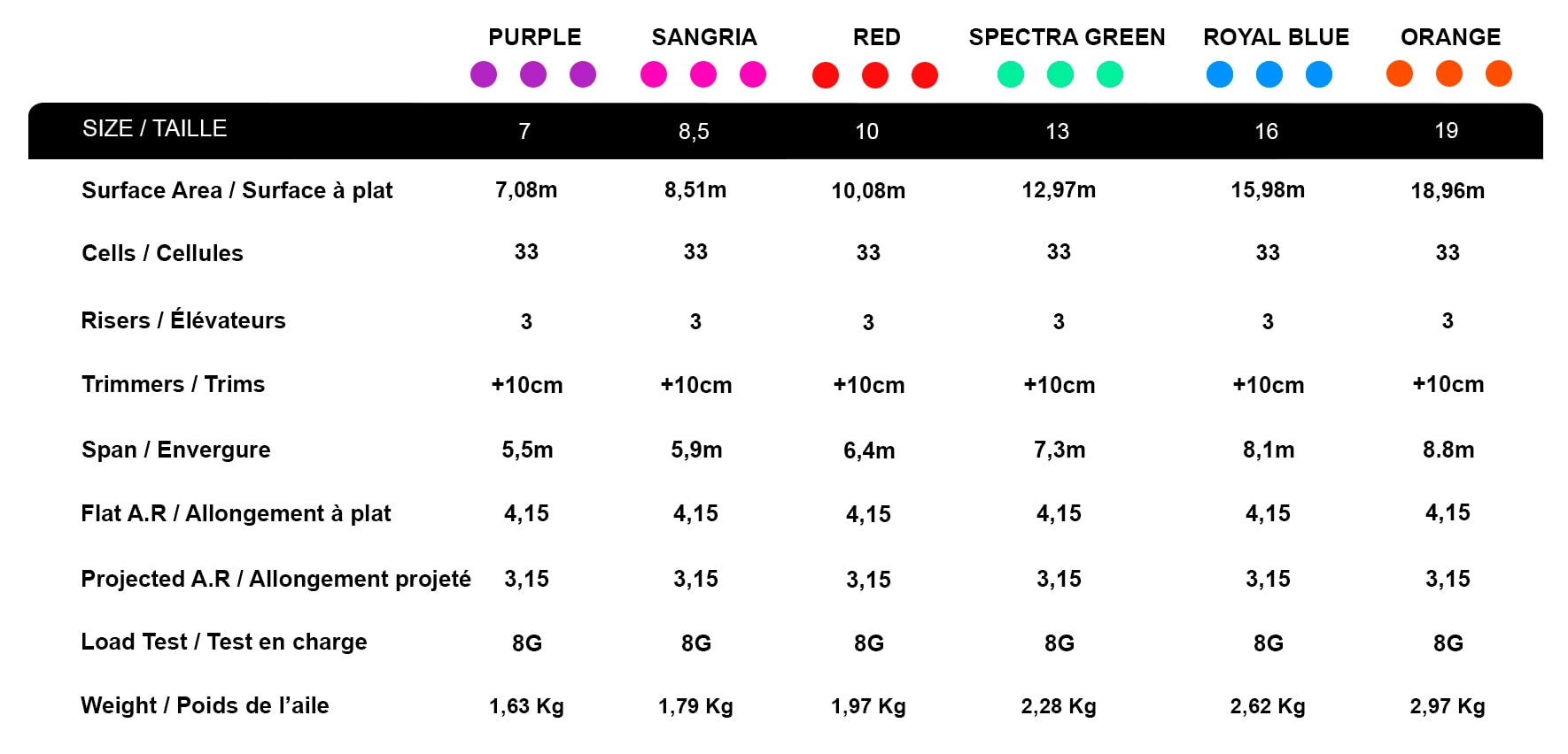 Trimmern är på hela  10 cm i ALLA storlekar ger en känsla av två olika gvingar i ett. Så din utveckling går långt med din Flame2… Upptäck hanteringen av din vinge när du trimmer helt…!