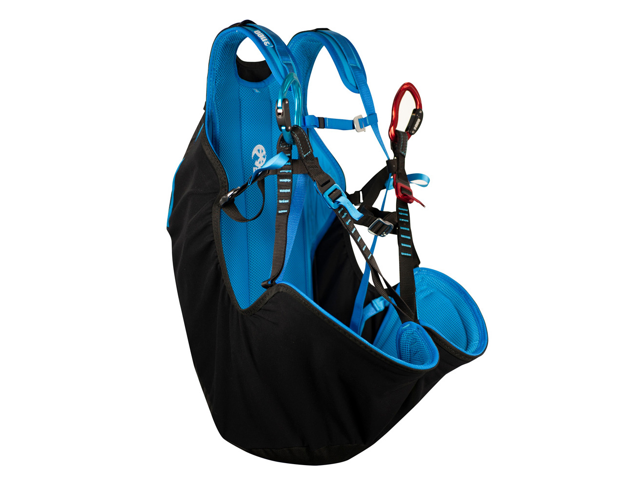 Utformad på ett sådant sätt att barnen enkelt kan sitta på egen hand genom att luta sig tillbaka. Selen lätt att säkra tack vare sina 2 manuella spännen och kan enkelt justeras till olika kroppsstorlekar och former. Mycket bekväm och tillgänglig i 3 storlekar, dess geometri är anpassad till ett stort antal kroppsformer beroende på deras åldrar: justerbart sittdjup, nedre höftband, bröstband justerbart i höjd, sidoinställningar och generell balans som är specifik för varje storlek. Den stora bakfickan gör stolen så bekväm som någon annan sele.