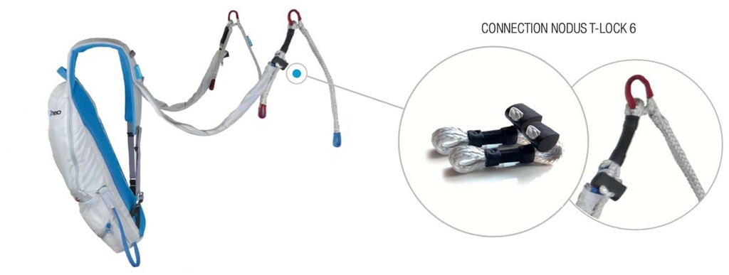 NODUS T-Lock är en multifunktionell textilkoppling med säkerhetslås. Den är idealisk för att ansluta nödskärmar och spreaders till NEO Rescue Backpack.