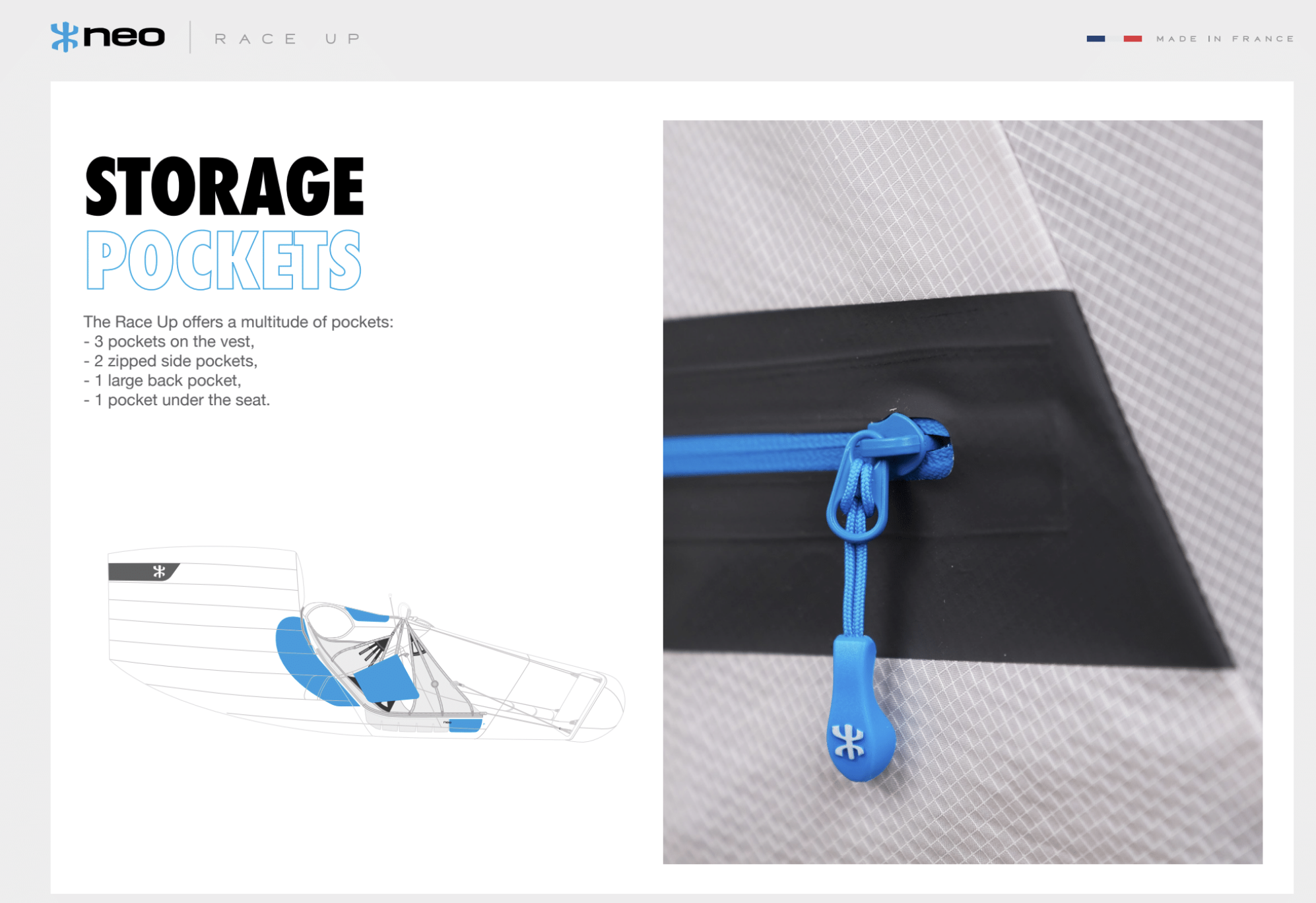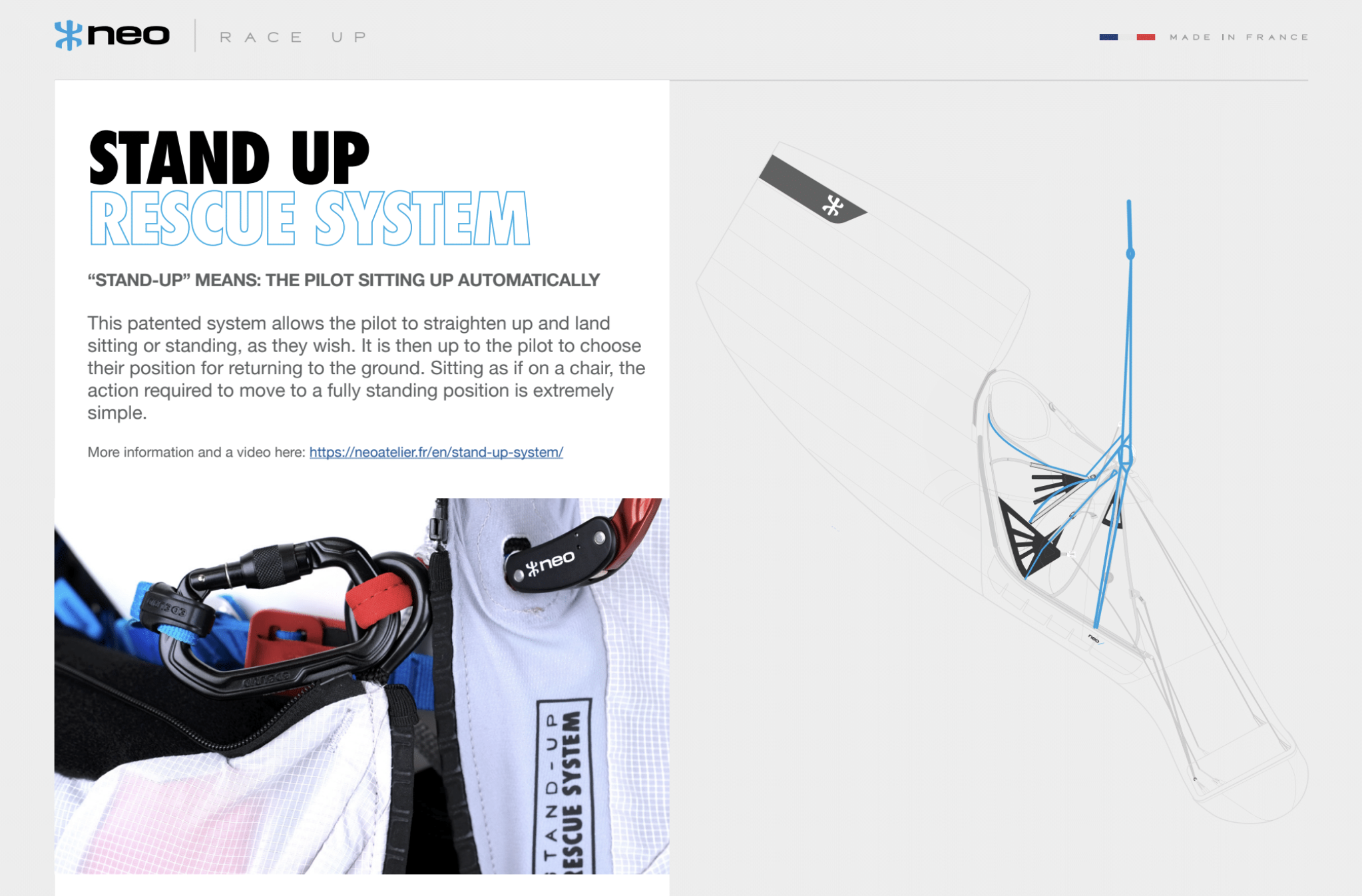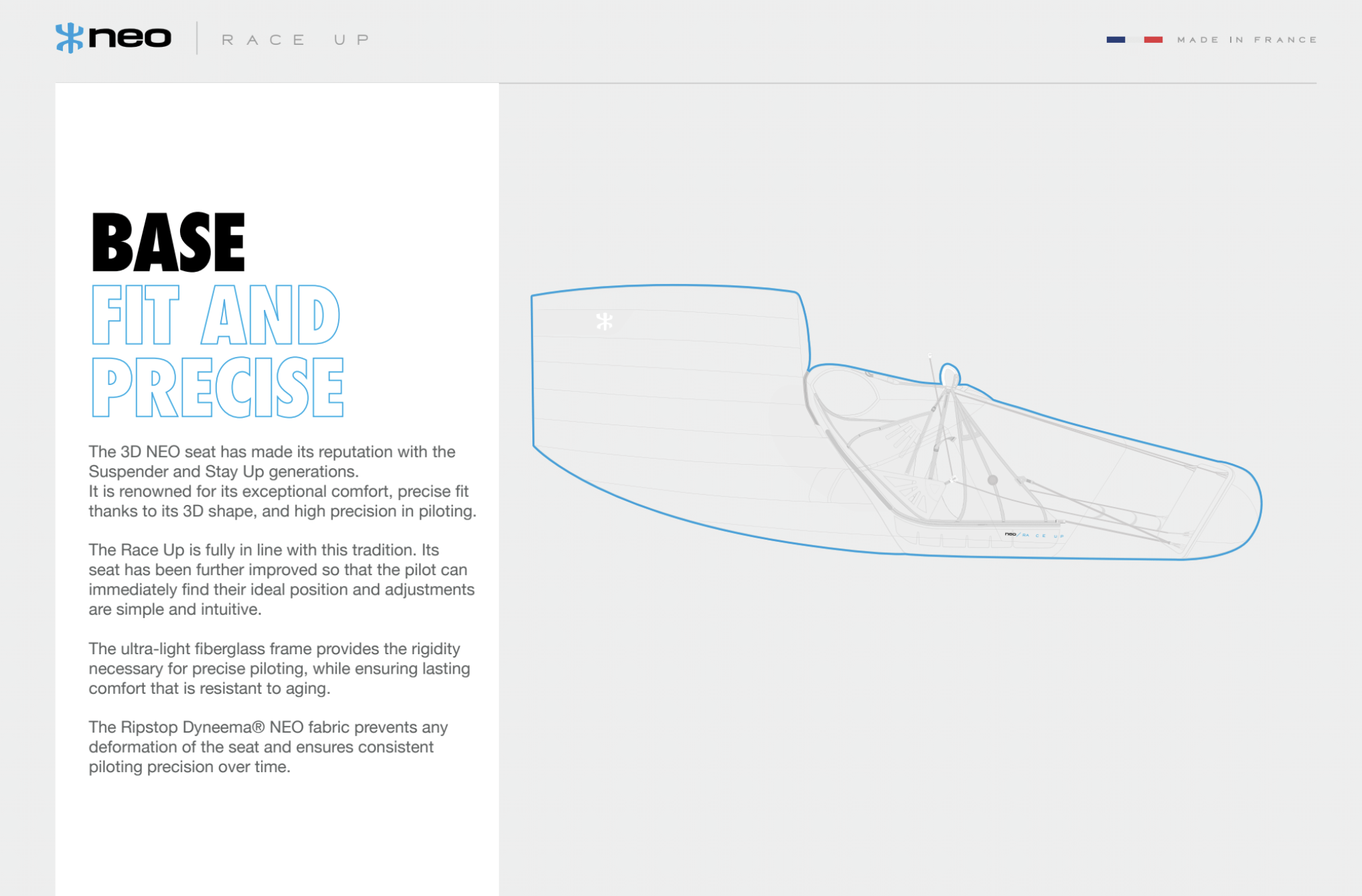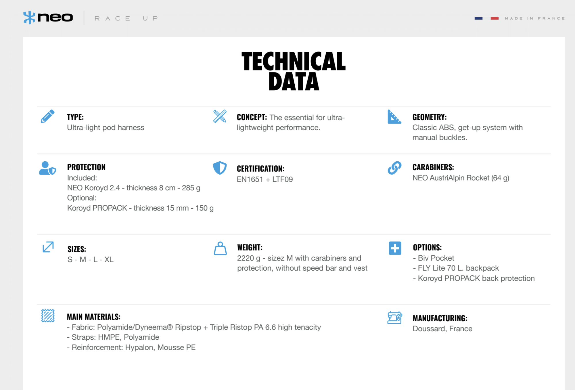 Ultralätt sele med högpresterande pod, Stand Up Rescue System, aerodynamisk väst och många andra förfinade detaljer finns tillgänglig i fyra storlekar från S till XL.