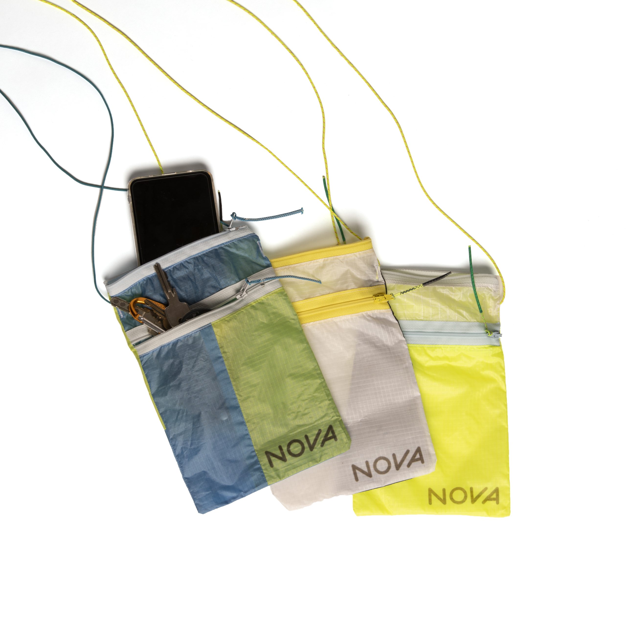 Eftersom den här väskan är sydd av begagnade paragliders som är olämpliga för flygning är varje enskild del unik. Du kan alltså inte beställa en specifik färg utan bara välja mellan ”mjuka” (ganska dämpade toner) och ”blanka” (ganska starka färger). UP TO DATE har två fickor med dragkedja, väger endast 15 gram och kan bäras över axeln eller som en bröstväska.