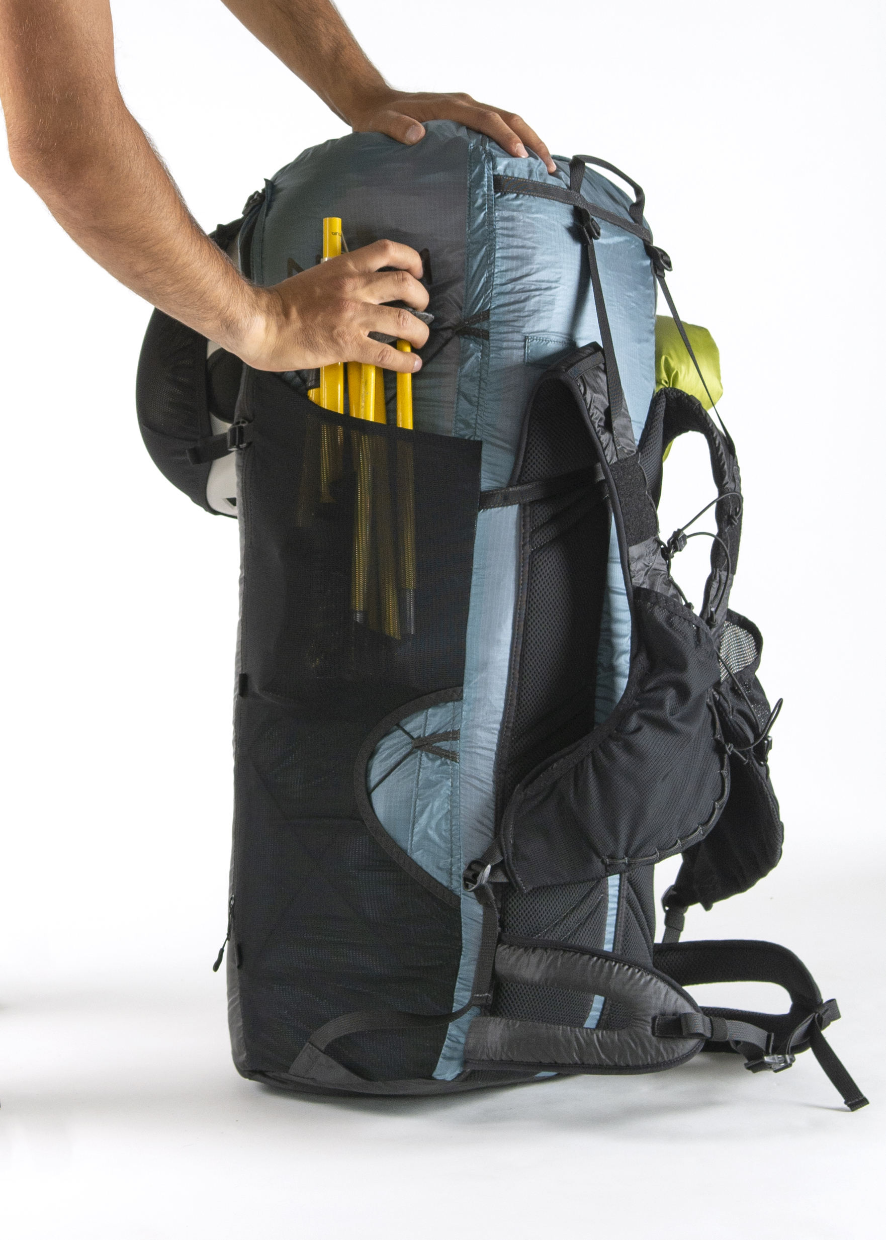 Den ultralätta hike & fly-ryggsäcken X-PACK 50 väger endast 525 gram, och erbjuder den exceptionell bärkomfort och praktiska funktioner. Paketvolymen på 50 liter kan utökas med ytterligare 10 liter tack vare roll-top-stängningen. X-PACK 50 erbjuder utrymme för mycket kompakt lättviktsutrustning – perfekt för hike & fly-tävlingar.