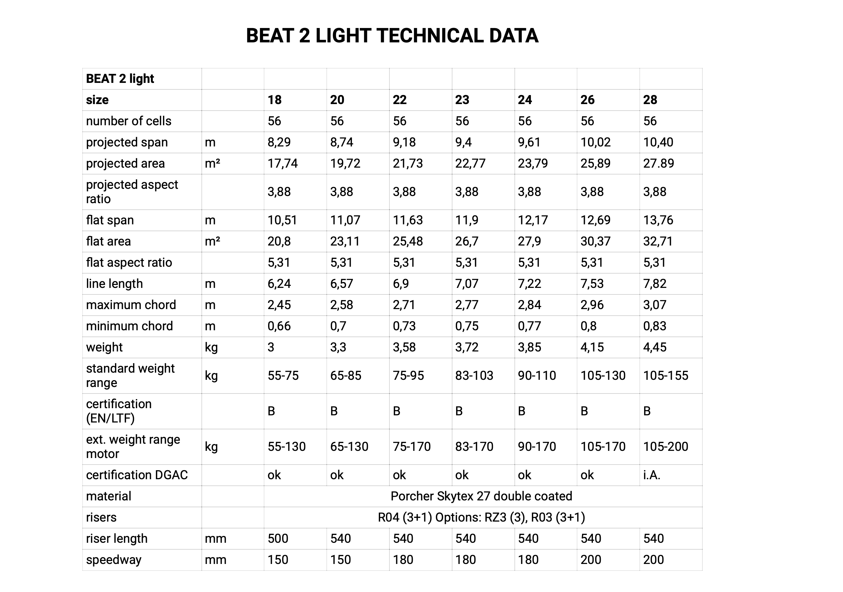 BEAT 2 lite har den perfekta balansen mellan enastående säkerhet och enkelhet å ena sidan och prestanda som kommer att tillfredsställa även en avancerad pilot när som helst å andra sidan.