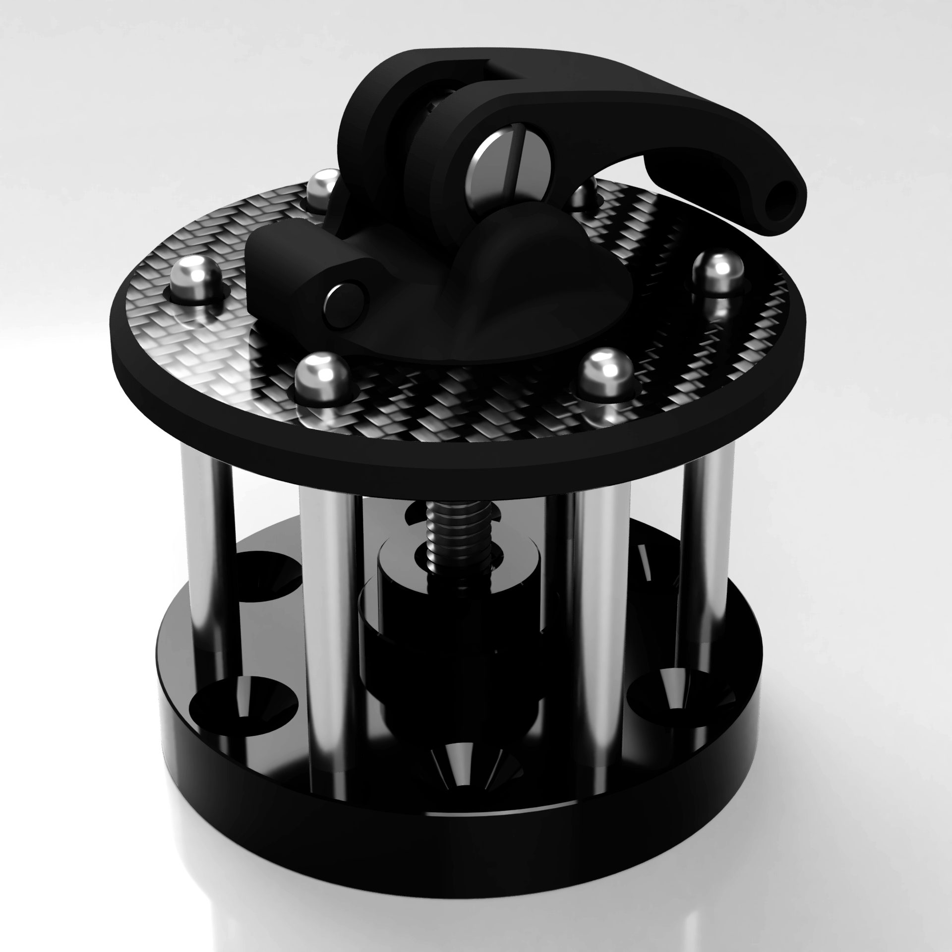 Mekanismen utnyttjar centrifugalkrafter från den snurrande propellern för att hålla den i låst läge vilket gör det omöjligt att lossa under flygningen. Den är gjord av ett slitstarkt nylonmaterial (samma saker som används i låsmuttrar) vilket gör den till en mycket stark och lätt produkt som också ser bra ut. Spaken är balanserad med en vikt för att eliminera eventuella vibrationer.