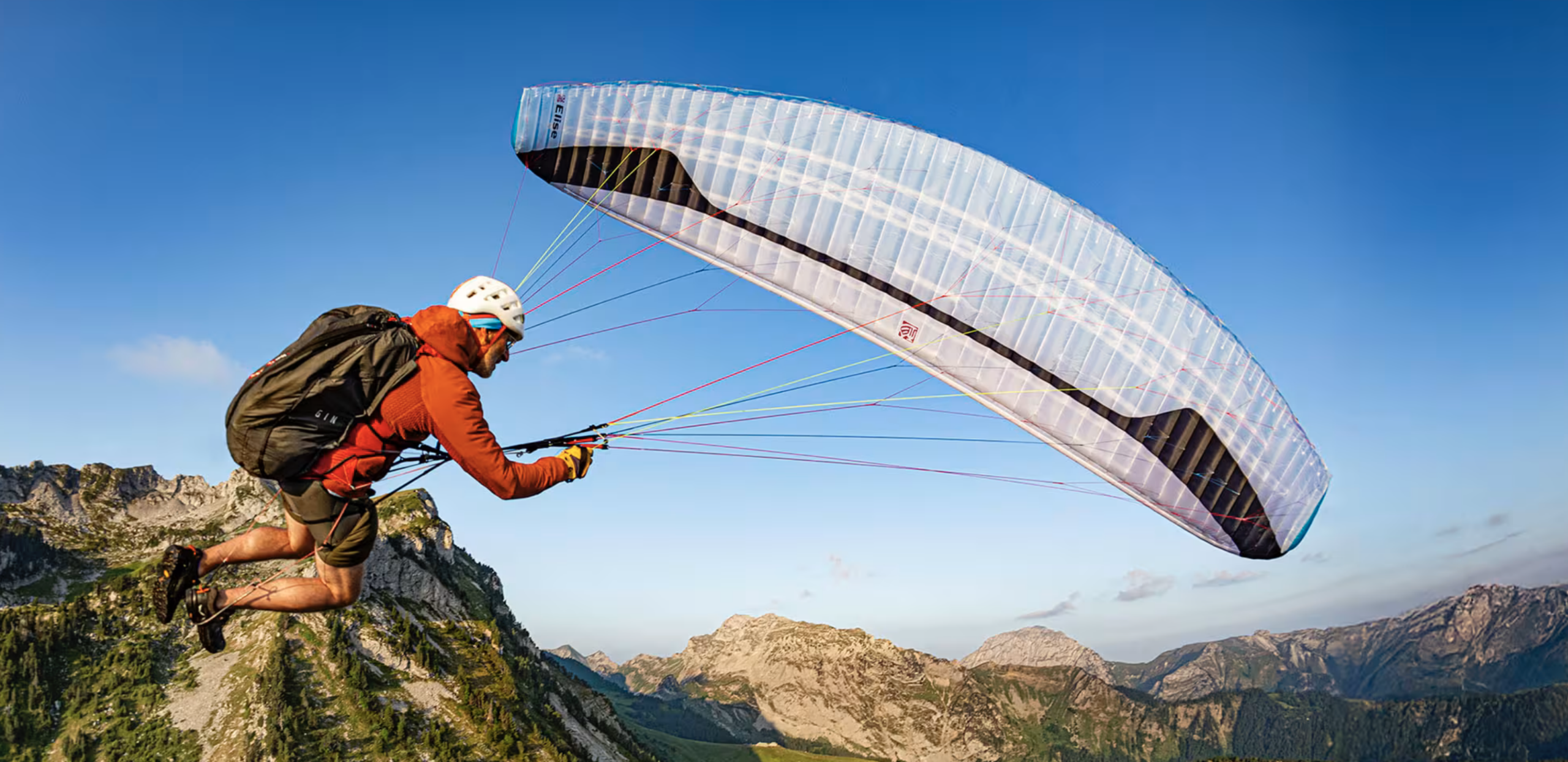 Skärm: Elise är en lätt och kompakt EN A-paraglider, lämplig som första vinge efter skolan eller för weekend warriors Den erbjuder högsta möjliga passiv säkerhet med smidig och rolig hantering, och kan vara din trogna långsiktiga följeslagare att ta med på dina resor, vandringar och till och med flygningar längs land.