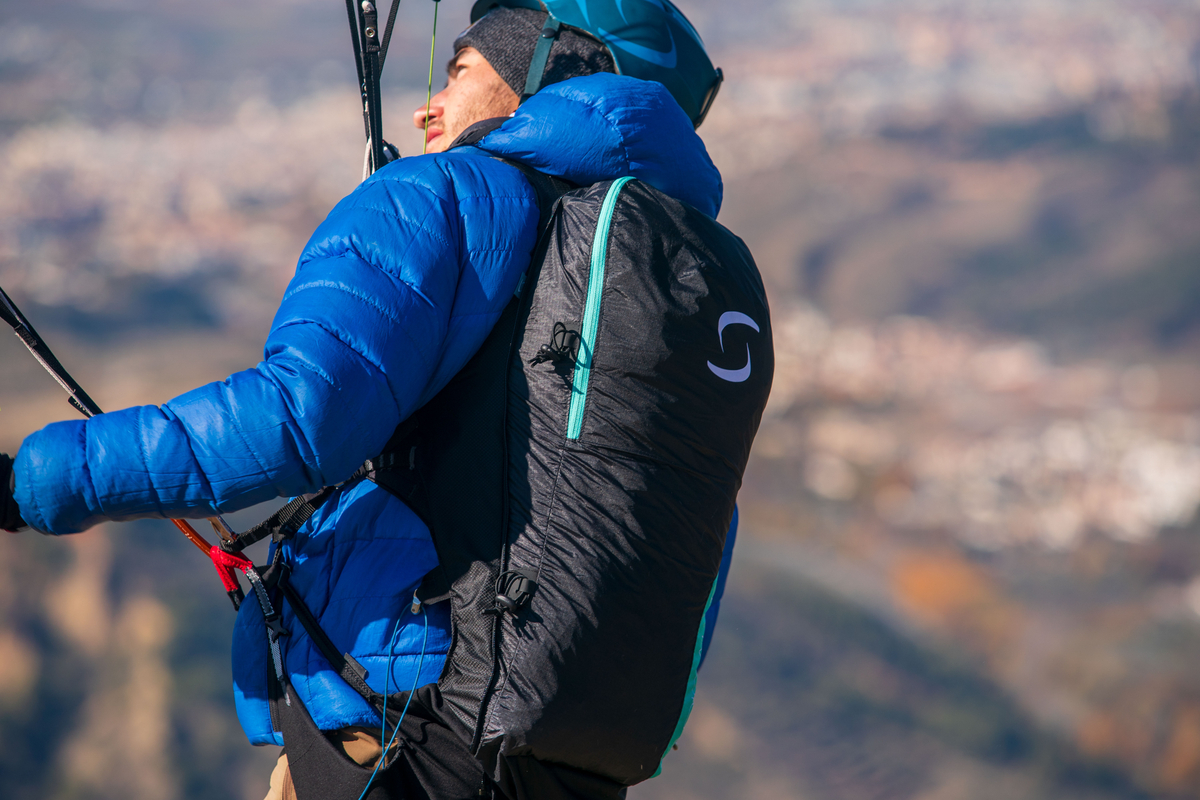 Ryggsäcken är anpassad efter pilotens morfologi, med ett större ryggstöd i storlek L än på storlek S och M.