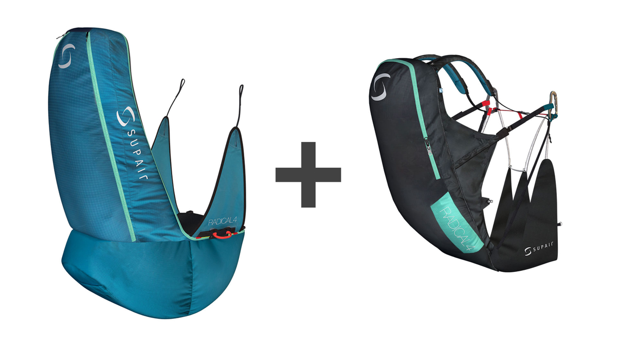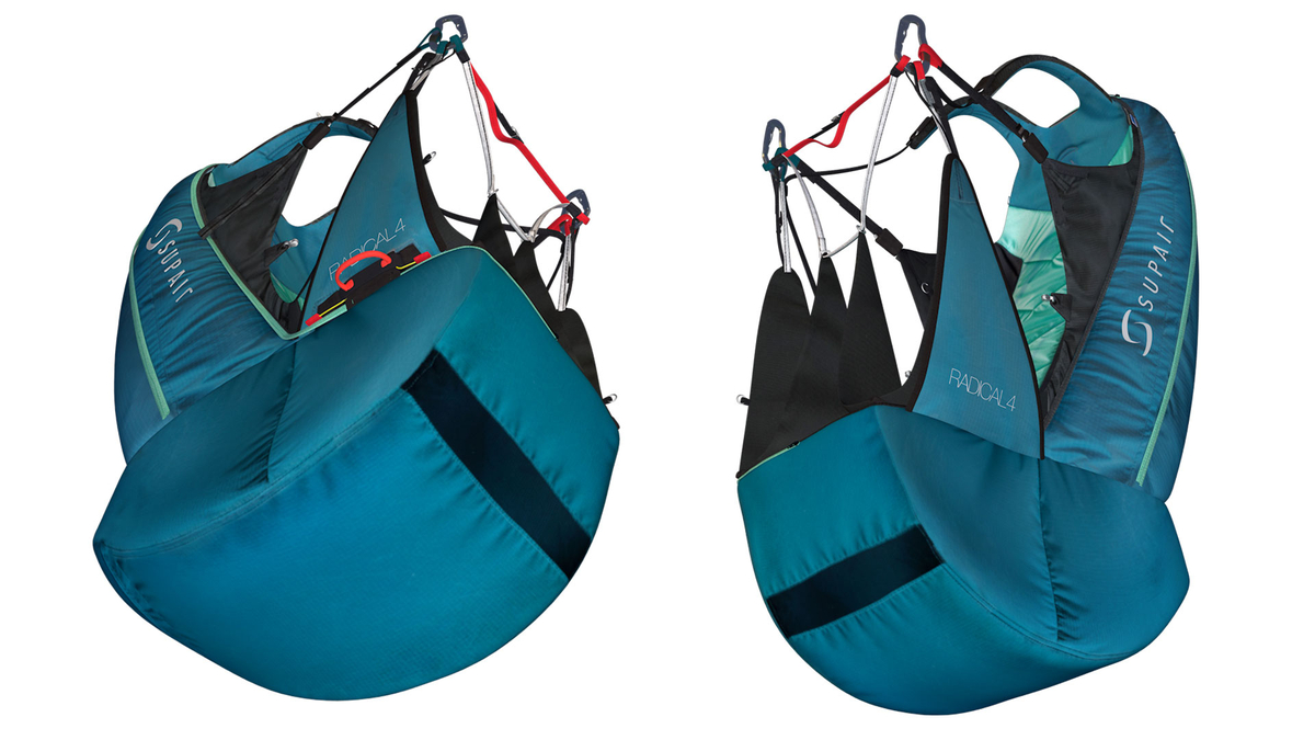 RADICAL 4 integrerar möjligheten att ansluta en avtagbar airbag modul / vändbar ryggsäck, inklusive en nödskärmsficka integrerad under sätet.