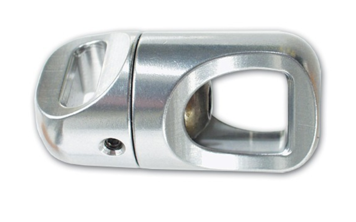 Swivel är tillverkad av höghållfast aluminiumlegering 7075 T6 och väger bara 120 g med en brytbelastning på 4,450 DaN.